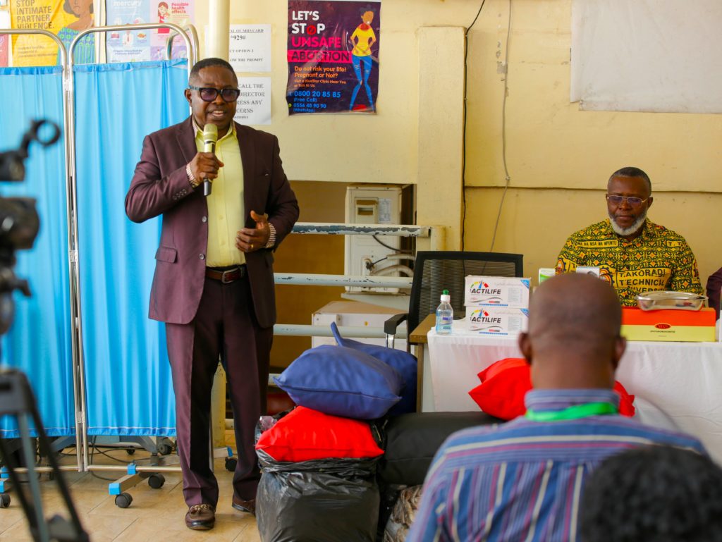The Breakthrough Family Chapel International, led by its Founder and General Overseer, Bishop Samuel Osei-Tutu, as part of its social intervention initiative has donated assorted medical equipment and supplements as well as ward furnishing to the Takoradi Technical University Hospital. The donated items included a Glucometer machine, a box of Glucometer strips, two Digital BP apparatus, an Analogue BP apparatus, two Screens, a medium Kidney dish and a small Kidney dish.