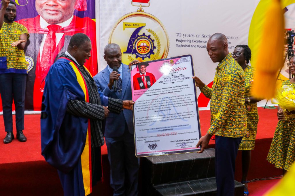 Evangelist Prof. Anthony Joe Turkson, Dean of the Faculty of Applied Sciences of Takoradi Technical University, TTU, has delivered the Maiden Inaugural Lecture of the University. The inaugural lecture which was delivered as part of the TTU 70th Anniversary celebration was on the theme; “Stat-a-thon: Insights, Interpretations and Implications”.