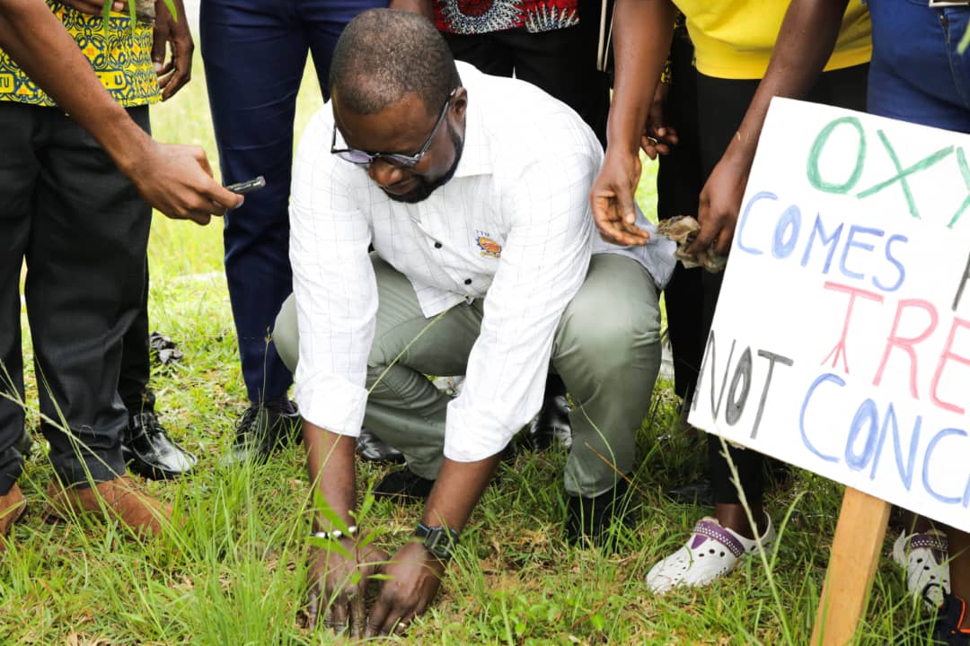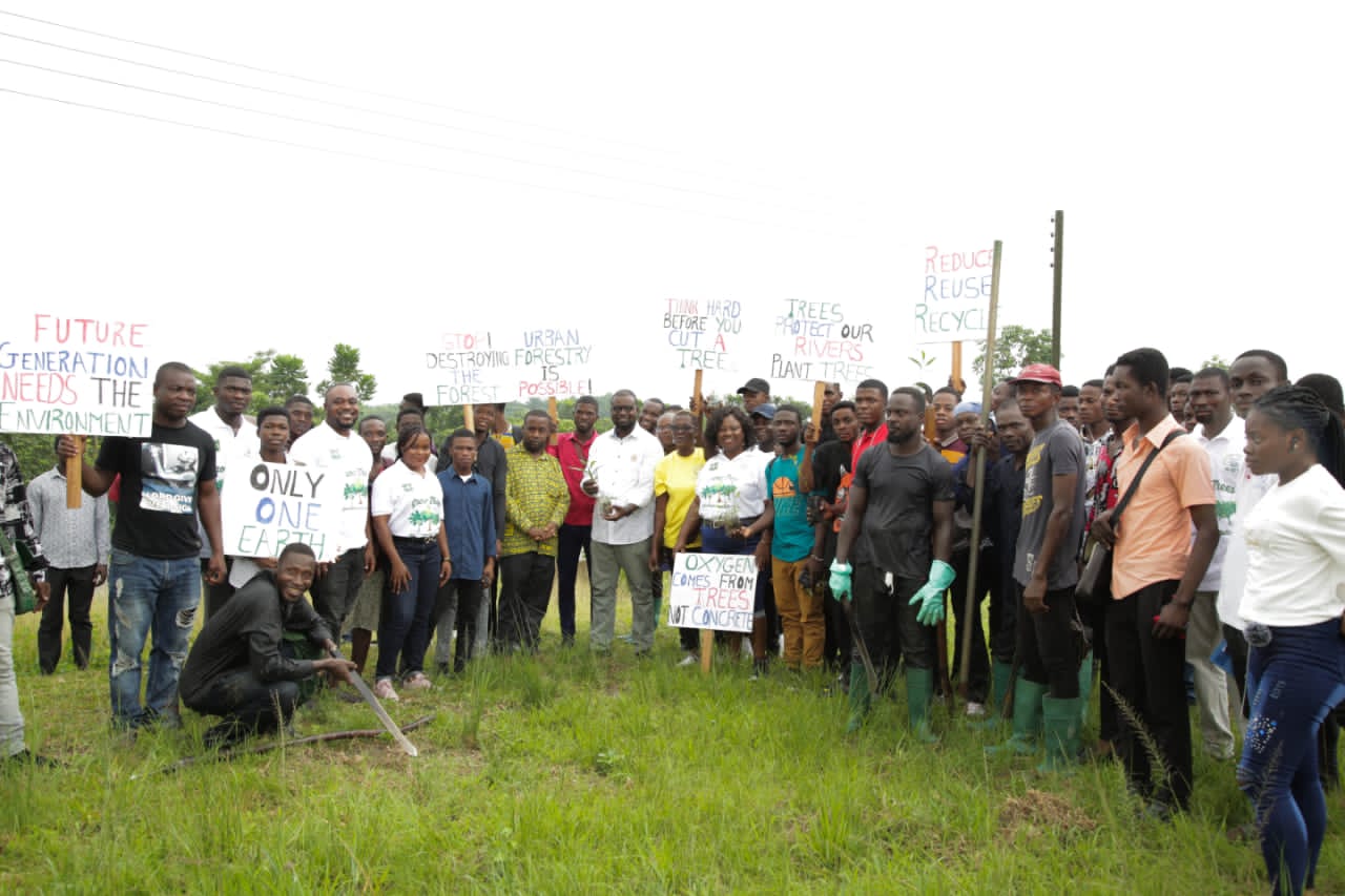 Takoradi Technical University in partnership with Goshen Global Vision, a environmentally oriented NGO has today planted 1,070 trees around the Akatakyi satellite campus of the University. The Dean of Students of TTU, Dr. Bruce Amartey who led the tree planting exercise to commemorate the national Green Ghana Day said the planted trees will provide the needed environmental cover and protection for the new campus with vast spaces of plot of land. “We plant this in the name of God the father, the son and the Holy Spirit. Amen. We will come back to nature it to grow and ensure that it becomes, not only a source of making our lives better, but as a monument to commemorate this day. We have a lot of fallow lands here at Akatakyi and we have to be strategic as an institution. A lot of storms circulate around this area, so if we have trees that can serve as shades to protect the facility here, it is much better. Unlike the main campus where almost every part of the place is almost occupied, here we have a lot of fallow lands and the storm will have a filled day in pulling down our structures”, he said. The Dean of students also just the essence of the tree planting due to the compelling concerns of global warming. “It is something that is really good because, again, global warming is gradually depleting the earth of its natural nature, so we have to plant a lot of trees as an institution or as a country. To do this, I mean we protect our land, we will not lose our natural species, both on the earth and in our oceans. Again we would be able to reduce drought…I’m to man this particular project. So I as Dean of Students, the Pro Vice Chancellor asked me to be here and it tells you the level of interest the management has in this particular project. Looking at the critical staff of the University who are here because of this project, tells me that, the management will go all out to ensure that, these plants are protected and nurtured to ensure that they see the light of day”, he added. Mary Perpetual Kwakuyi of Goshen Global Vision given the rationale for the partnership with TTU on the tree planting exercise said it is to help advance its environmental protection agenda. “Last year, we planted with Takoradi Technical University in front of the road medians of the university. This year, we decided to come here, Akatakyi. If you look at the left side, you will see that, the place is so bare, the trees have been cut off. So we decided to come here to partner with you today and plant these trees. One reason is to provide a wind break for your beautiful building here. If we don’t plant the trees, in about two to three years you will realize that when it rains the storm is going to bring this building down as you see it like this. Secondly, we are going to restore the habitat of the biodiversity. Thus you will realize that we can’t see any bird here, we can’t see any butterfly, and we can’t see any animal crawling here. Because the trees are cut off. So as we restore the trees within two to three years, you will realise that, the biodiversity is coming back because they exist in order to help us humans also to exist. Thirdly, when these trees come up the students are going to stay under them as a shade to read and to learn. It’s also going to promote teaching and learning in Takoreadi Technical University. So this is the reason we are partnering with you to make Takoradi Technical University an environmentally friendly university that all will love to come and see”, she said. Mary Perpetual Kwakuyi of Goshen Global Vision further gave a breakdown and benefits of the species of trees planted. “Today we are planting 1,070 trees made up of twenty different species, and then fruit trees as well. We are also looking at food security so the students around when they are hungry, they can plug some for lunch or for snack. These include mangoes, oranges, guava, coconuts and other fruits trees”, she added. Goshen Global Vision is an environmental NGO that operates in the Western Region of Ghana. It came to being in September, 2019. It has launched a project with the assemblies which is looking at how to reverse climate change negative impact on Western Region.
