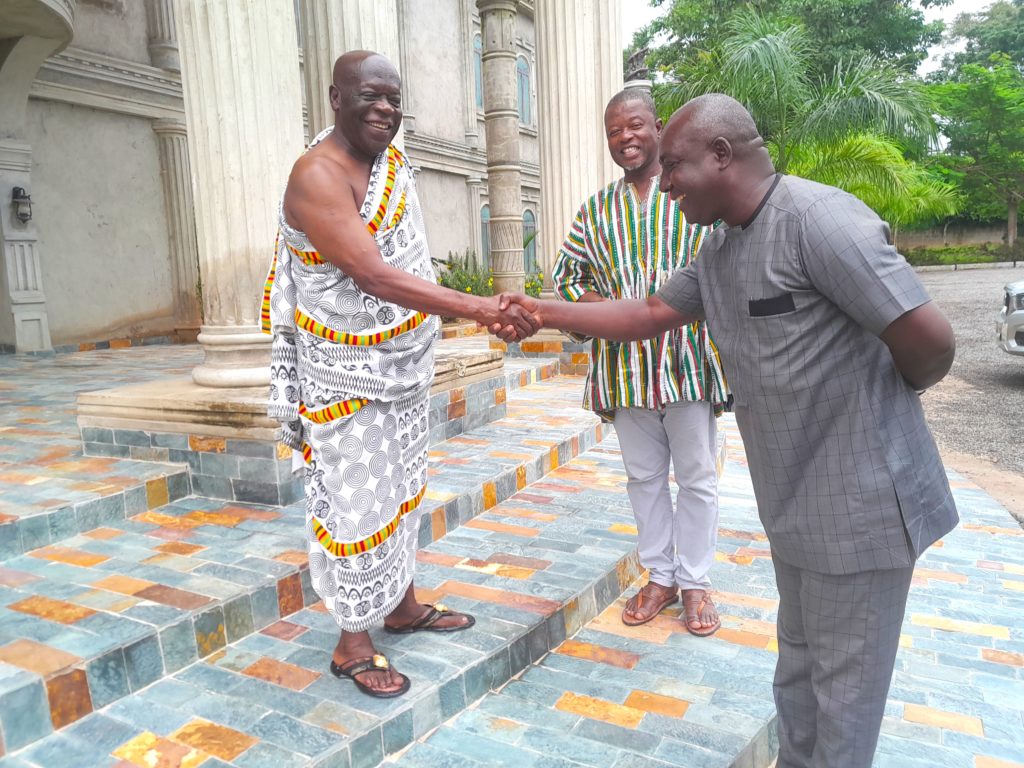 In a move to have a glowing relationship with the Chiefs and people of Assin Kushea in the Assin North District of the Central Region, the Pro Vice Chancellor of Takoradi Technical University, Prof. Victor Bondzie Micah together with the Registrar, Dr. Moses Maclean Abnory, have paid a courtesy call on the Omanhene of Assin Kushea Traditional Area, Nana Ahunabobrim Prah Agyensaim VI.